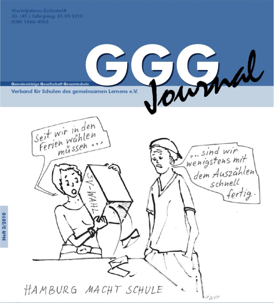 GGG Journal (Heft 03 / 2010) (das ganze Heft als PDF) INHALT: Bildungs-Politik Putsch der Eliten GGG-intern 40 Jahre GGG – Die zweiten 20 Jahre Zu bildungspolitischen Parallelen zwischen Nordirland und Deutschland Nachruf Ludwig von Friedeburg Nachruf Ursula Dörger Serie Organisationsskizze Offene Schule Waldau GGG-extra Bundesarbeitstagung 2010 I-IV Beispielhafte Projekte Özil, Neuer, Matip – WM-Fieber […]