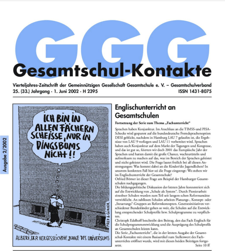 Gesamtschul-Kontakte (Heft 2-2002) – (das ganze Heft als PDF) INHALT: Bildungs-Politik Warum Männer Amok laufen Unterrichts-Projekte Projektorientiertes Lernen / Lernen lernen Serie Fachunterricht Englischunterricht an Hamburger Gesamtschulen Schulprogramm und Schulprofil – Beiträge des Faches Englisch an Gesamtschulen…