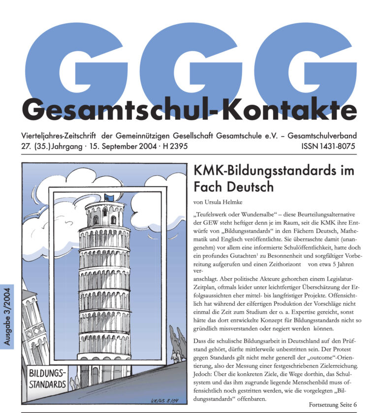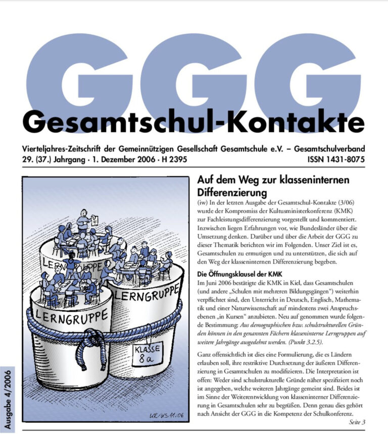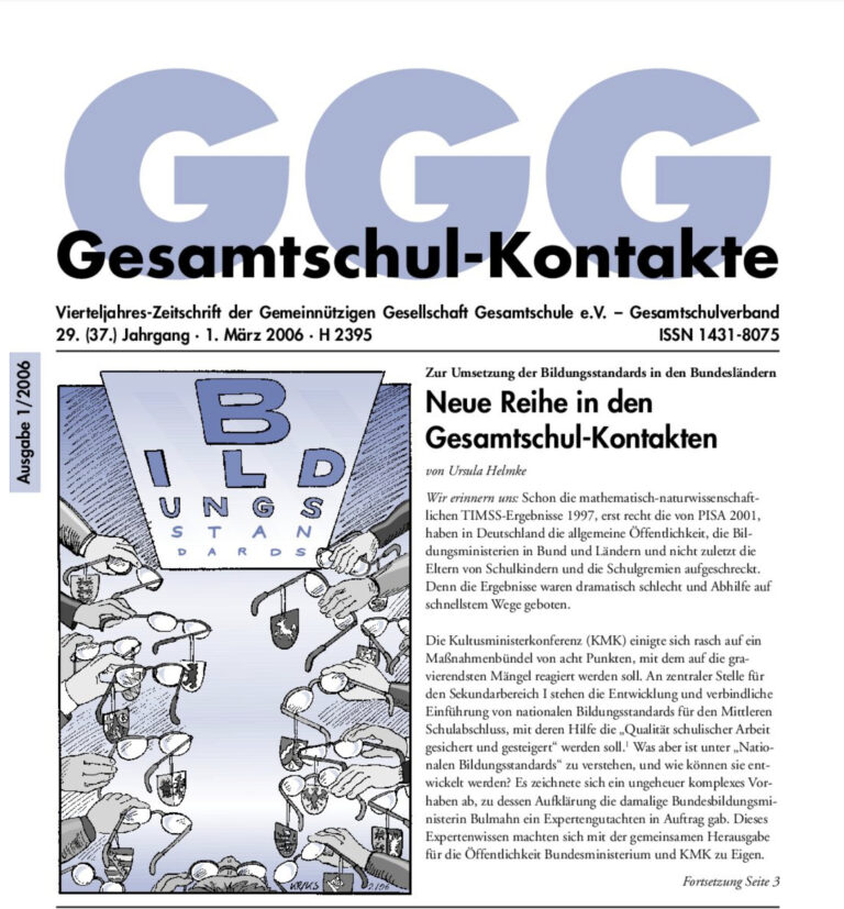 Gesamtschul-Kontakte (Heft 3-2006) – (das ganze Heft als PDF) INHALT: Serie Zur Umsetzung der Bildungsstandards Zum Beispiel: Mecklenburg-Vorpommern Bildungs-Polititk Fachleistungsdifferenzierung – Was bringt die neue Vereinbarung der Kultusministerkonferenz für die Gesamtschulen? GGG-Extra Englischunterricht und Gesamtschule…