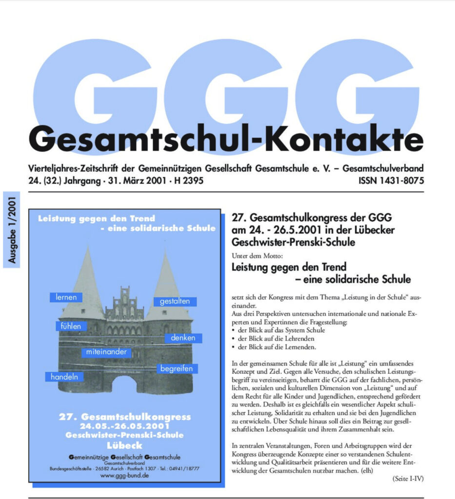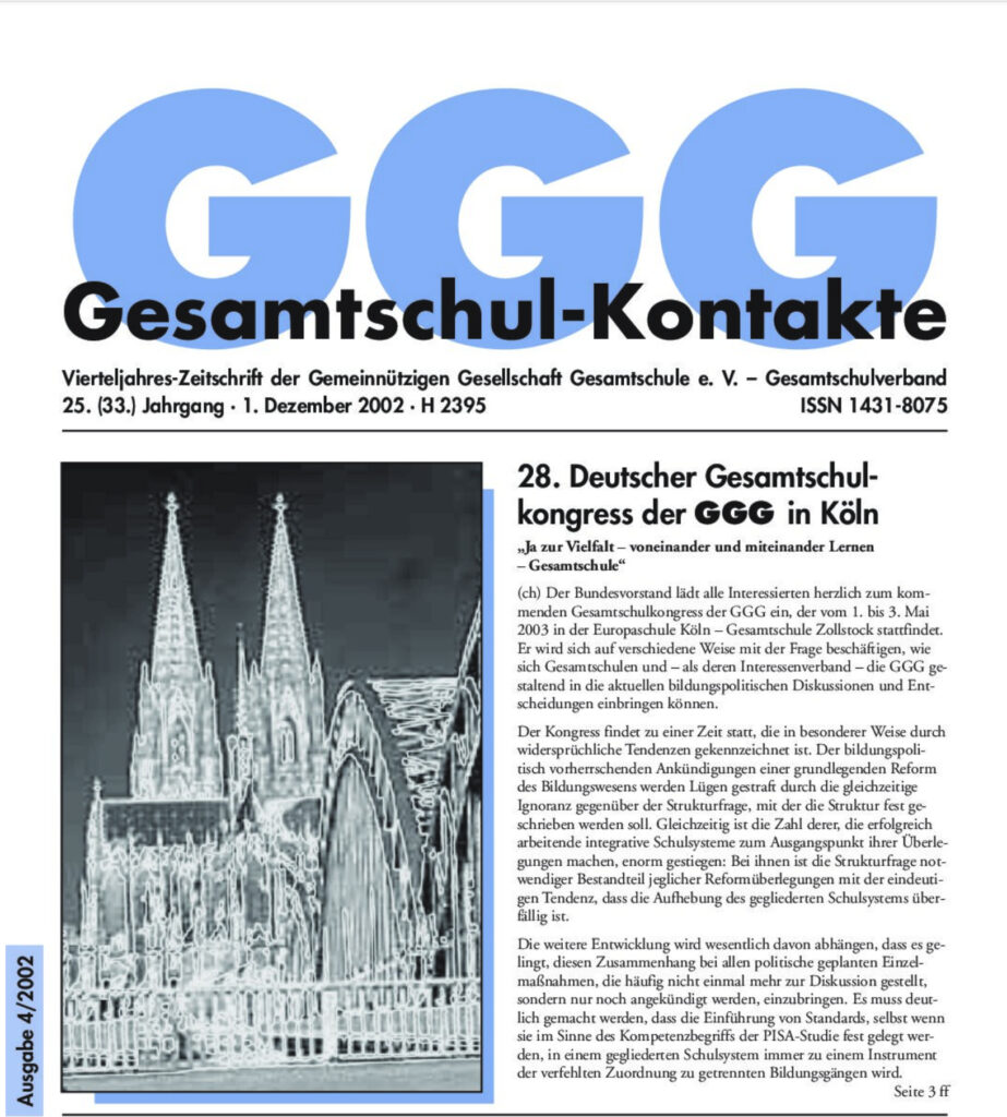 Gesamtschul-Kontakte (Heft 1-2003) – (das ganze Heft als PDF) INHALT: Serie Fachunterricht Ästhetische Bildung GGG-extra 28. Gesamtschulkongress in Köln Offensiv für eine Bildungreform gegen den politischen Trend I Mitgliederversammlung I Die
