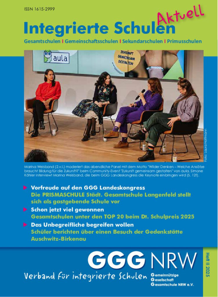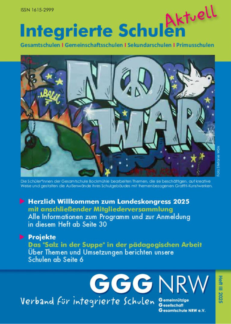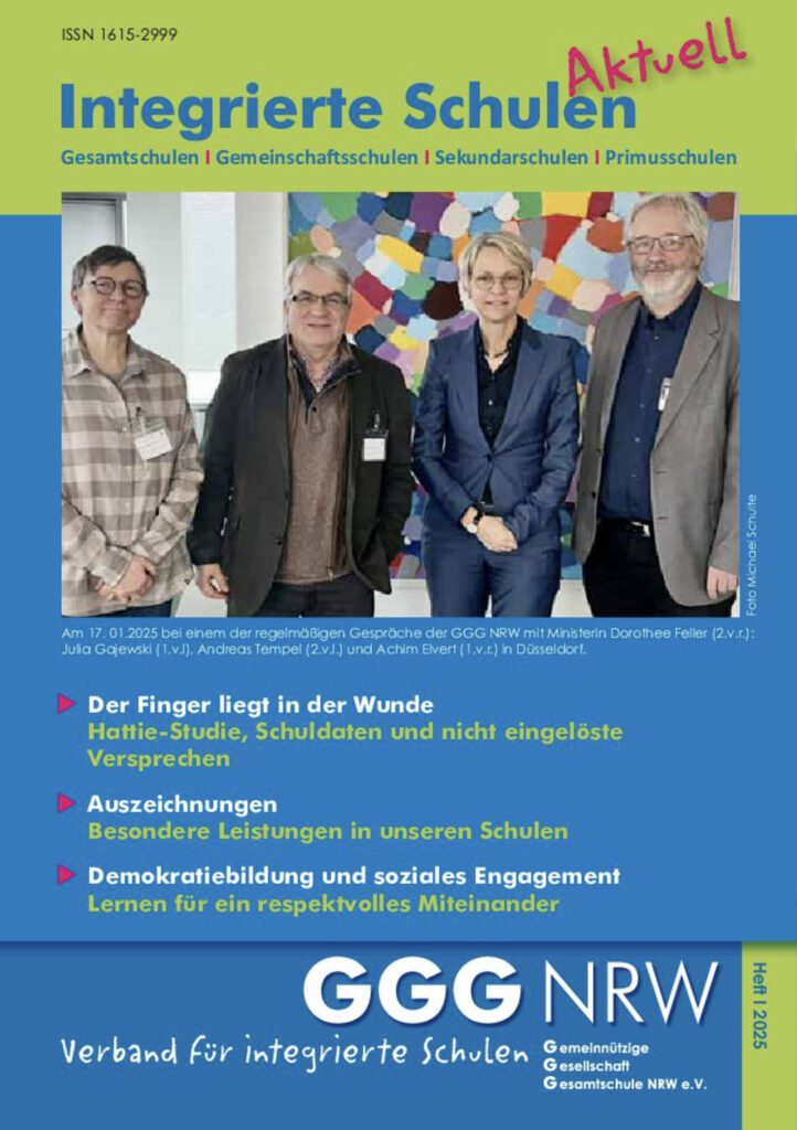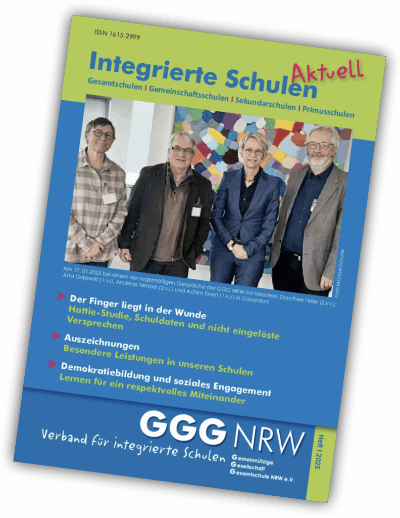 INTEGRIERTE SCHULEN aktuell (das ganze Heft 2025/2 hier als PDF) INHALT Aktuelle Bildungspolitik Andreas Tempel Machen ist wie wollen – nur krasser! Teil 2 Dr. Brigitte Schumann Regionalverband Ruhr ist am Startchancen-Programm beteiligt! Erhard Schoppengerd – Eine Schule…
